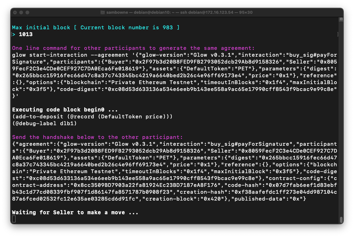 Copy and paste in the first commands from the other window, starting with "glow start-interaction --agreement".