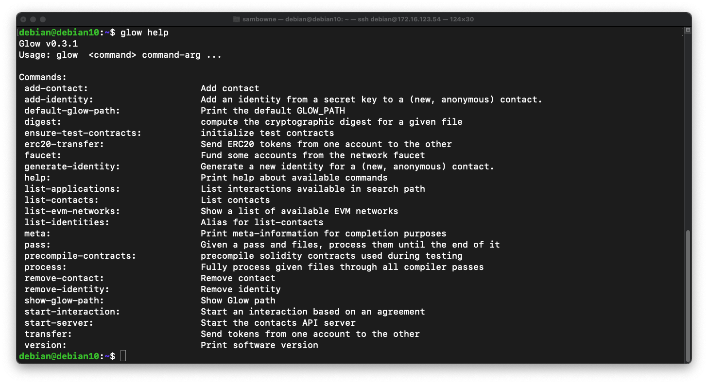 Execute this command to see the glow help page: