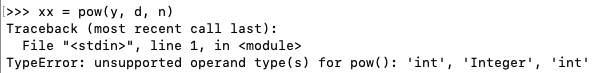 Execute these commands to load the same keys used above:Using those keys, encrypt this message:n = 10142789312725007 p = 100711409 q = int(n / p) phin = (p-1) * (q-1) e = 5 import sympy d = sympy.invert(e, phin)Hint 1: The message, converted to a decimal number, is 7 digits long and ends in 43.WOWHint 2: The encrypted message is 16 digits long and ends in 66.