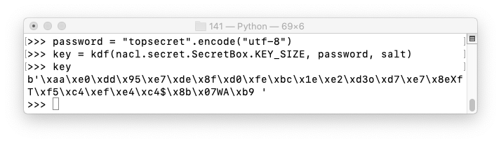 key = kdf(nacl.secret.SecretBox.KEY_SIZE, password, salt)