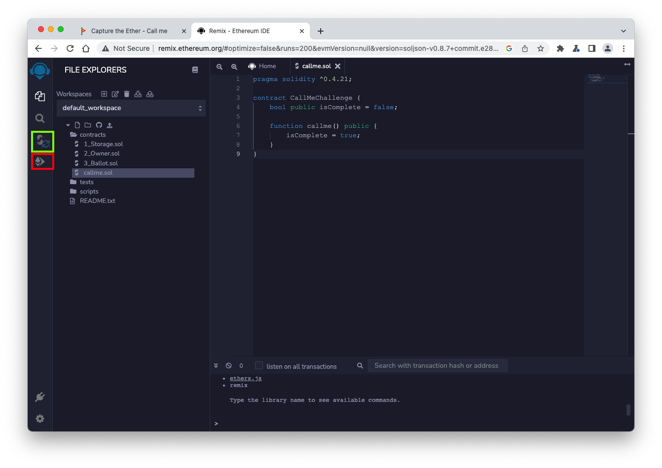 On the left side of the Remix page, click the Compile icon, outlined in green in the image above.