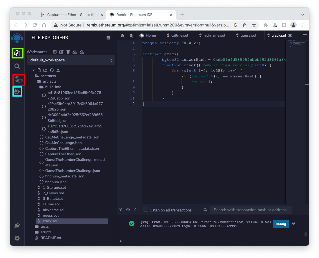 Click the "Compile crack.sol" button.