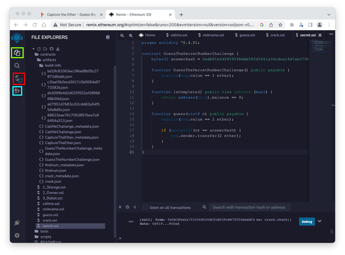 Click the "Compile secret.sol" button.