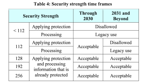"Security Strength" refers to the number of bits of security, meaning that a brute force attack would need to search through that many bits to find the key.