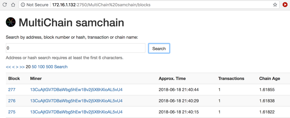 In the "Search Results" page, click "MultiChain samchain 0".