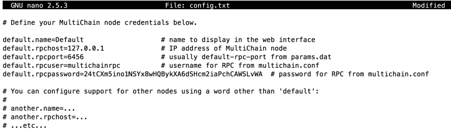 sudo nano /var/www/html/multichain-web-demo/config.txt