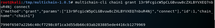 multichain-cli chain1 grant 13r9FcgicW5pCLGBvuw8cZXLBYVXEQ7nbuR4Nj connect