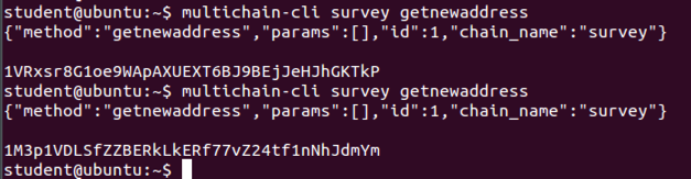multichain-cli survey getnewaddress