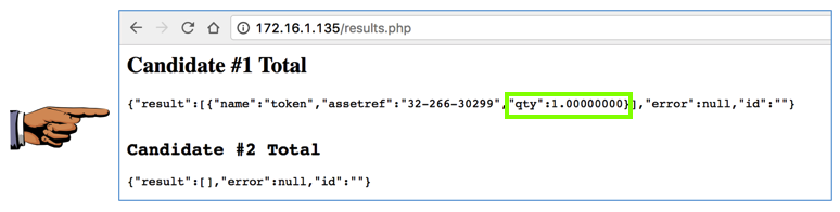 To vote, on your Voter Machine, execute one of those commands, as shown below.