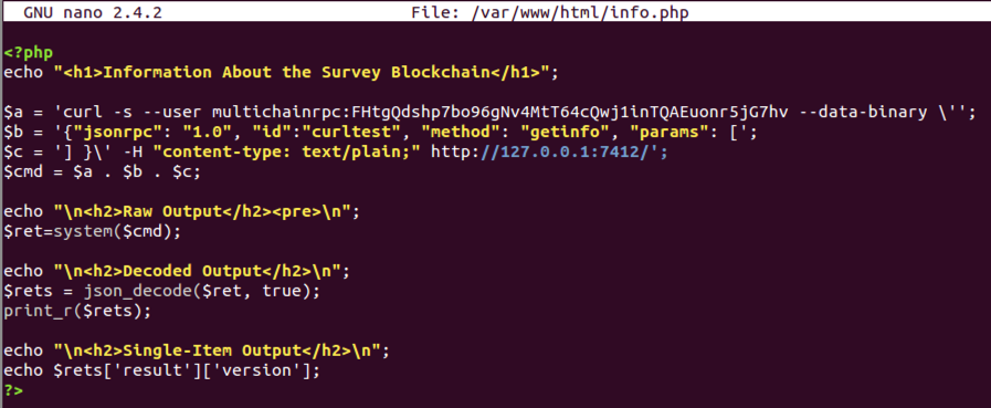 echo "<h1>Information About the Survey Blockchain</h1>";