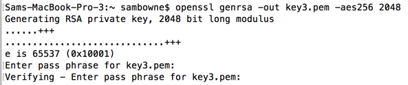 openssl genrsa -out key3.pem -aes256 2048