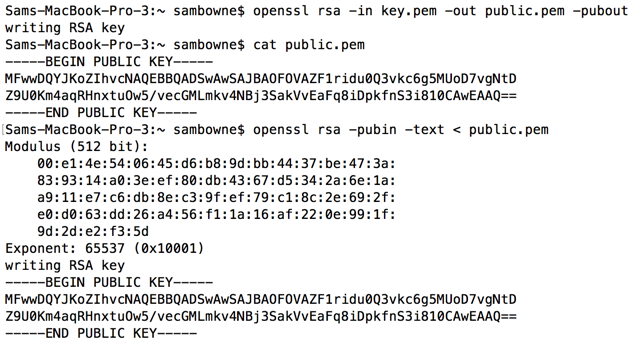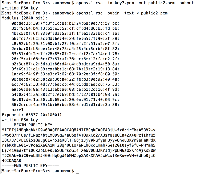 openssl rsa -in key2.pem -out public2.pem -pubout