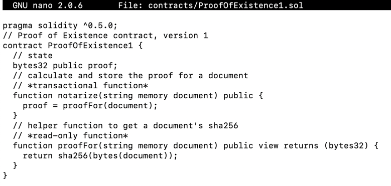 In the contract above, notarize is a transactional function and proofFor is a constant function.