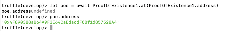 let poe = await ProofOfExistence1.at(ProofOfExistence1.address)