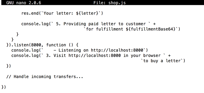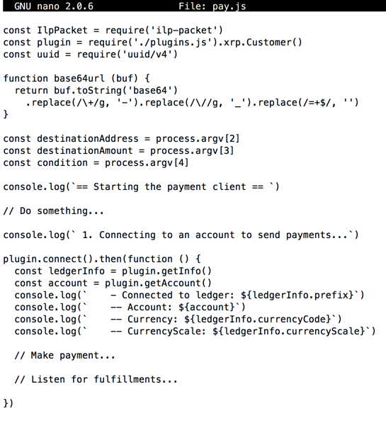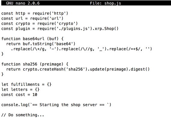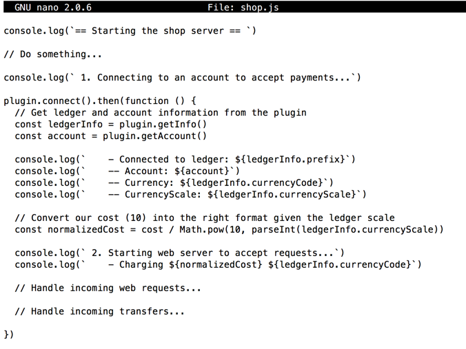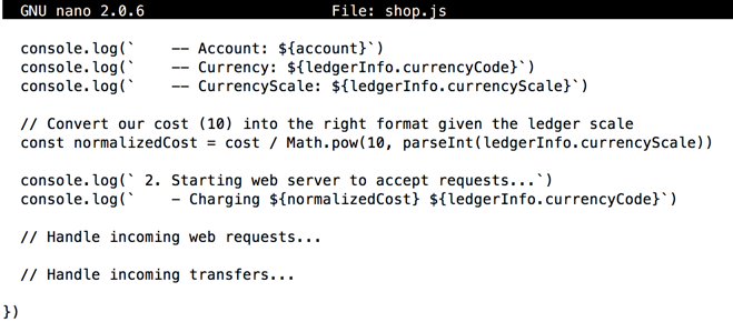 We need to add code that connects to the Ripple account, so the shop can receive funds.