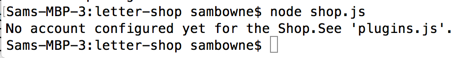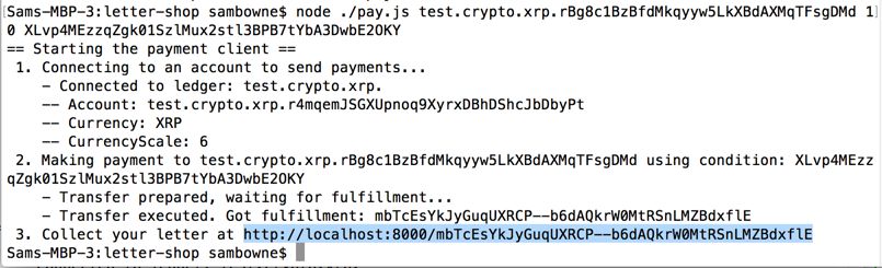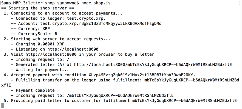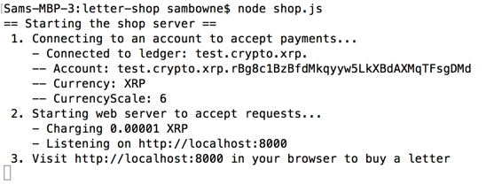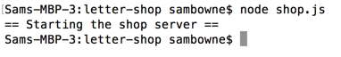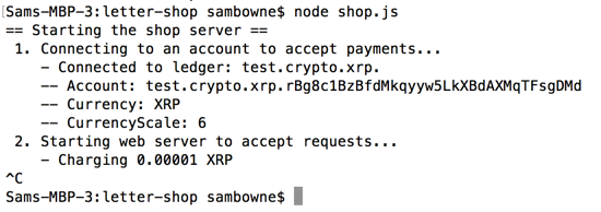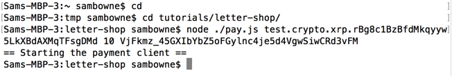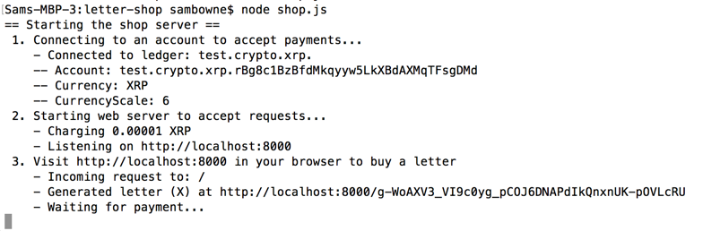 Look at your original Terminal window running the shop. It's still "Waiting for payment...", as shown below.