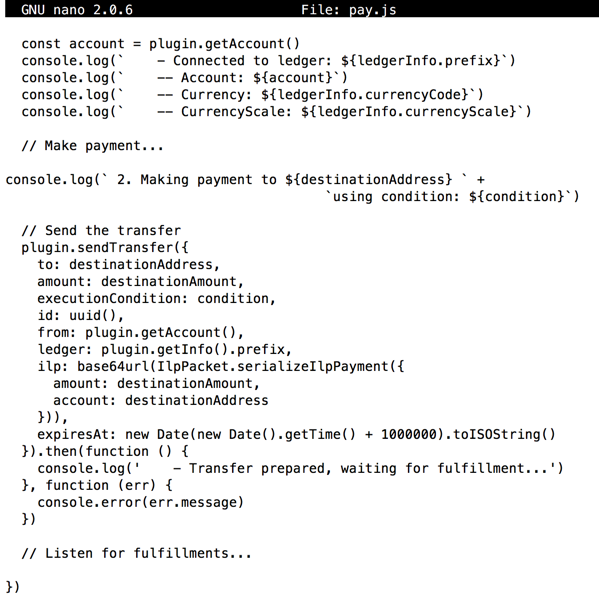 console.log(' - Transfer executed. Got fulfillment: ' +