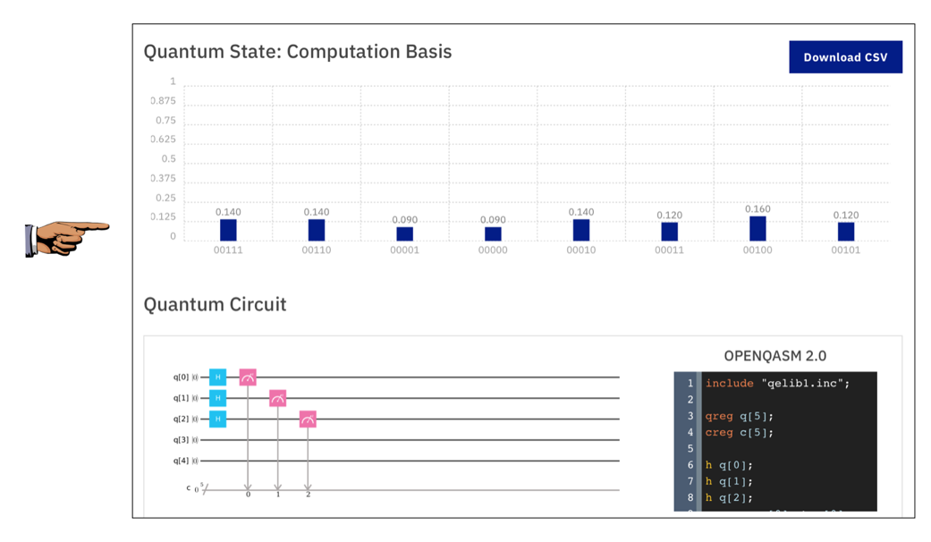 It did not demonstrate any quantum behavior. There are five Qubits, and they all start in the "Zero" state, written as