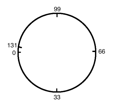 Modulus 132 means there is no number larger than 131. Adding 1 to 131 makes it roll back to 0. The numbers are on a ring, as shown below.