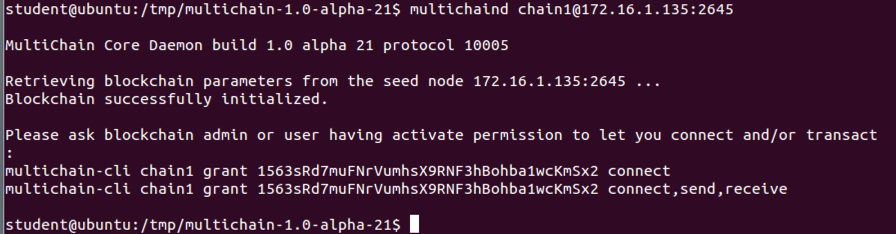 On your First Server, execute this command, using the address of your Second Server from the "2. Connecting to a blockchain" section: