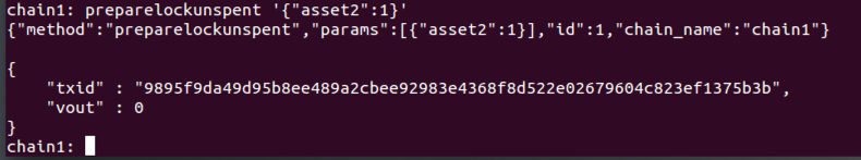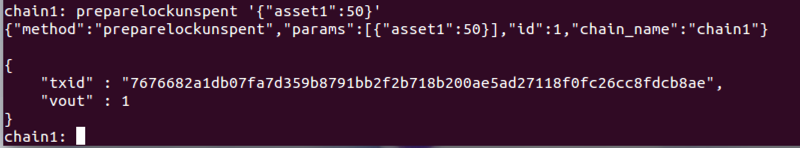 Because it is locked, this transaction output will be protected against spending unless explicitly spent or unlocked. Now we will use it to start the exchange transaction, specifying that we want 50 units of asset1 in exchange for this output.