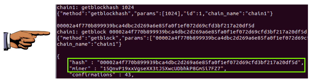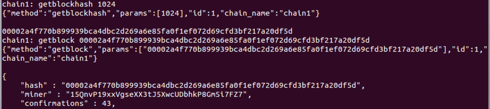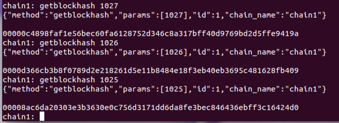 Now wait for a couple of minutes, so that a few blocks are mined. On either server, check the current block height: