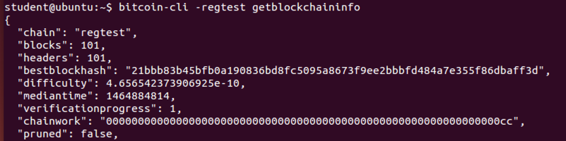 bitcoin-cli -regtest getblockchaininfo