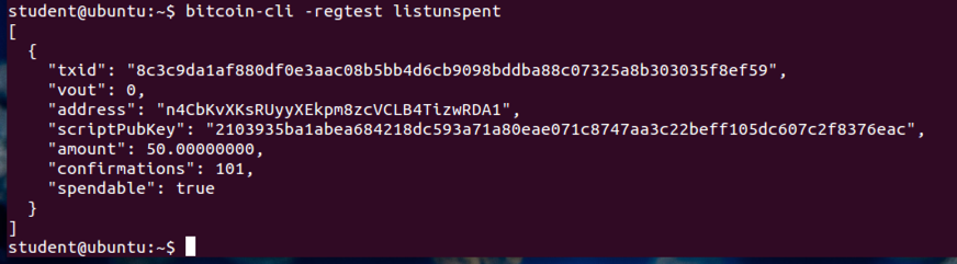 bitcoin-cli -regtest listunspent