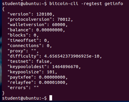 bitcoin-cli -regtest getinfo