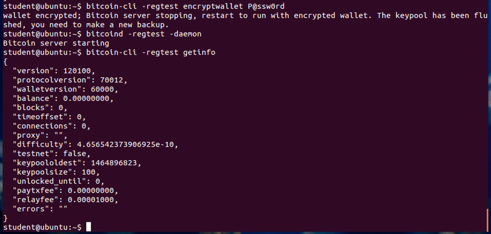bitcoin-cli -regtest encryptwallet P@ssw0rd
