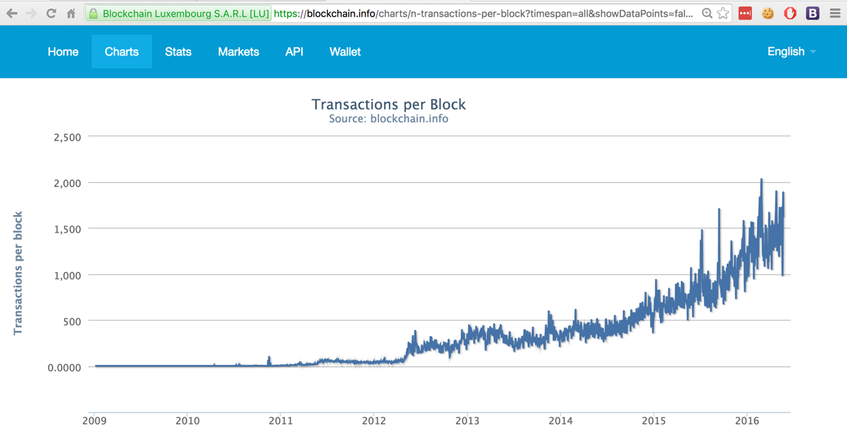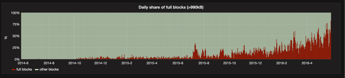 Bitcoin is nearly at its limit: all blocks full. There is an active debate among Bitcoin enthusiasts about increasing the block size.