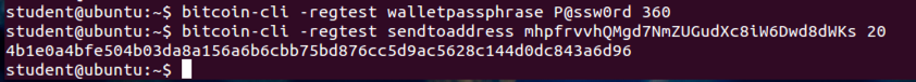 bitcoin-cli -regtest walletpassphrase P@ssw0rd 360