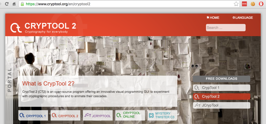 On the right side, in the "FREE DOWNLOADS" section, click "CrypTool 2", as shown below.