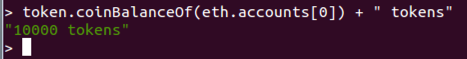 token.coinBalanceOf(eth.accounts[0]) + " tokens"
