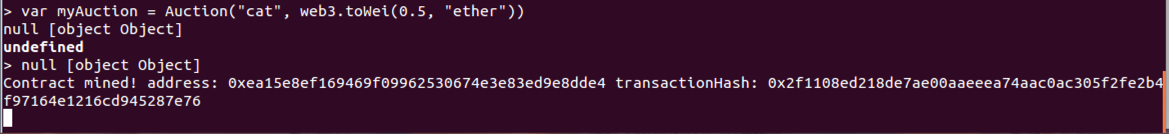 var myAuction = Auction("cat", web3.toWei(0.5, "ether"))