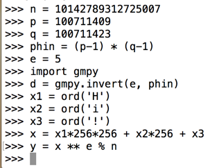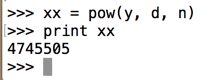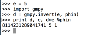 It's not obvious how to find d, but there's a simple way to do it in Python, using the "gmpy> library.