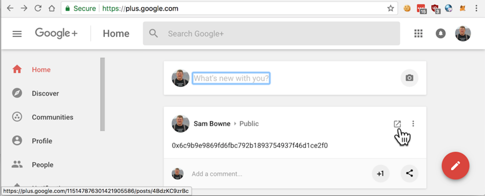 When your post appears, click the little square-and-arrow icon, as shown below.