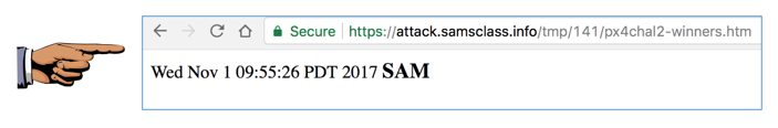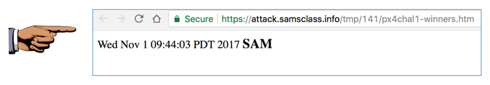 Save a whole-screen image of the winners page showing your name, as shown below, with the filename "YOUR NAME Proj 4x1".