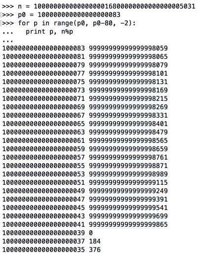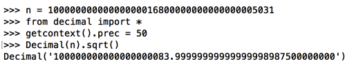 As shown above, the square root of n is 100000000000000000083 (plus a fraction).