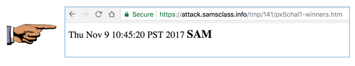 Save a whole-screen image of the winners page showing your name, as shown below, with the filename "YOUR NAME Proj 5x1".