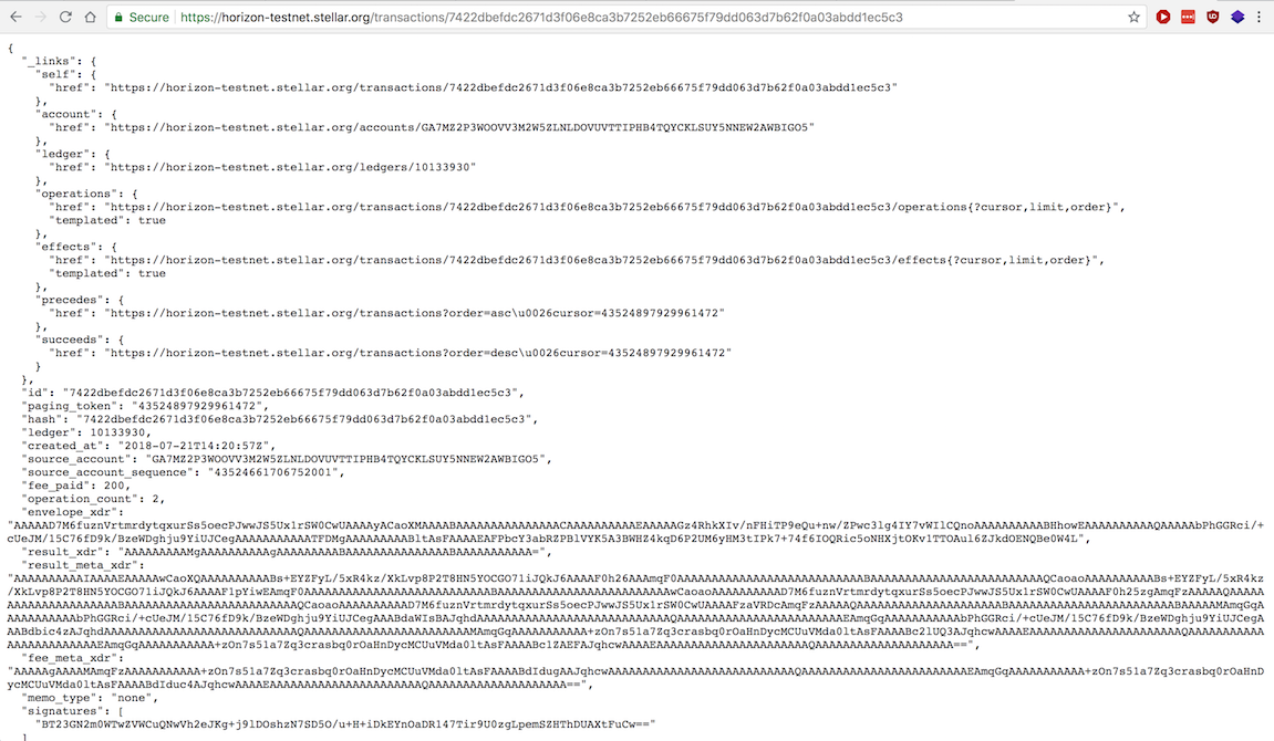 The original Terminal window shows a lot of transaction information, including a URL to view the transaction, highlighted in the image below.