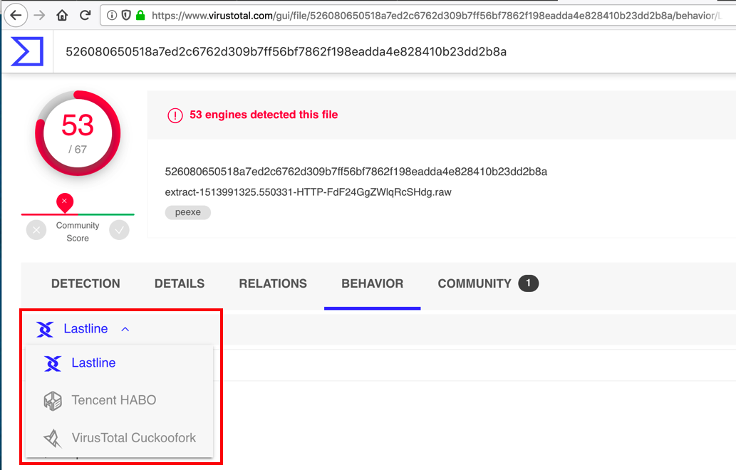 On the left side, under the word "DETECTION", click Lastline. There are three sandbox reports available, as outlined in red in the image below.