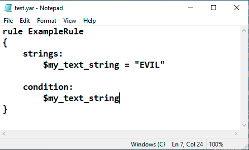 A page containing a set of Yara rules to detect executable files and packers opens, as shown below.