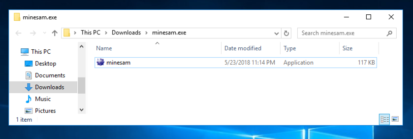 Open File Explorer and navigate to your Downloads folder. Right-click the minesam.exe.zip file and click "Extract All", Extract.