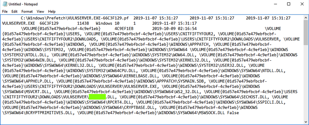 In Notepad, press Ctrl+V to paste in the data about VULNSERVER.