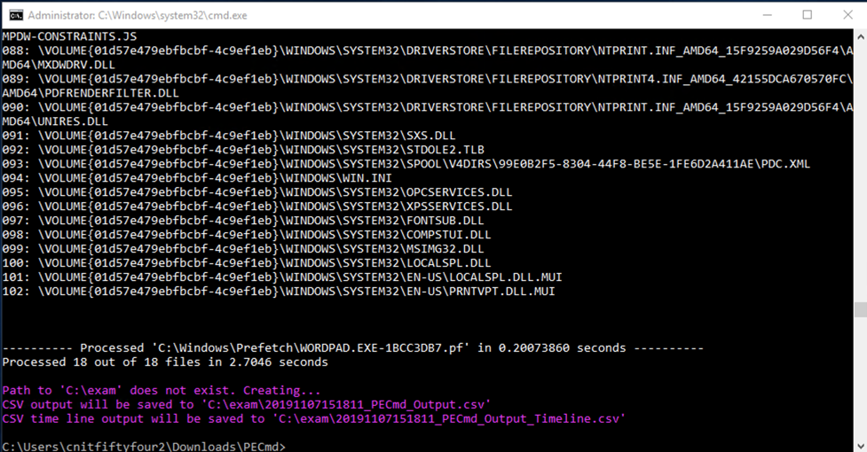 PECmd.exe -d "C:\Windows\Prefetch" --csv "C:\exam"
