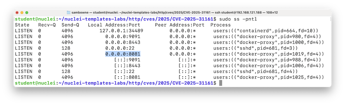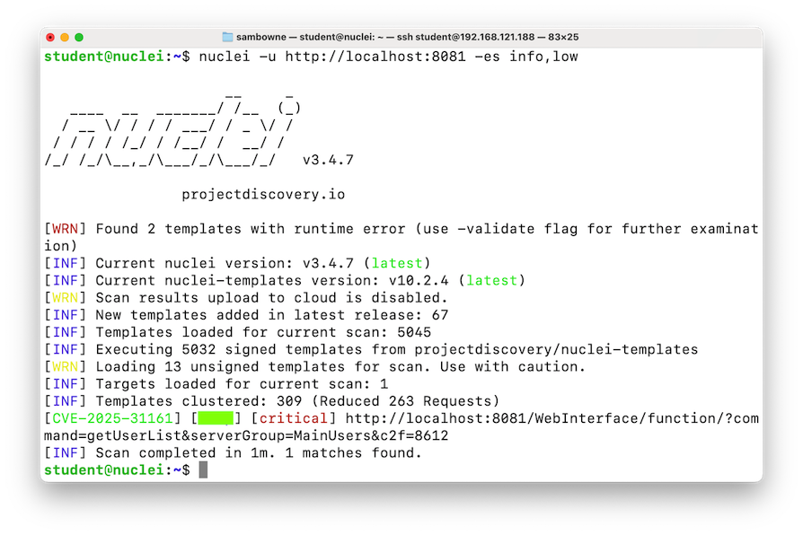 cd nuclei -u http://localhost:8081 -es info,low