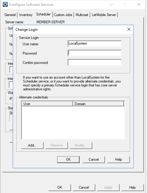 The "Configure Scheduler Credentials" page appears. Follow the instructions to open the "Change Login" box, as shown below.