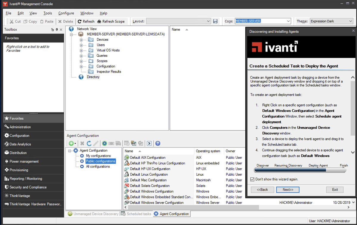 In the Ivanti Management Console, at the bottom, in the Agent Configuration panel, in its left pane, click "Public Configurations".