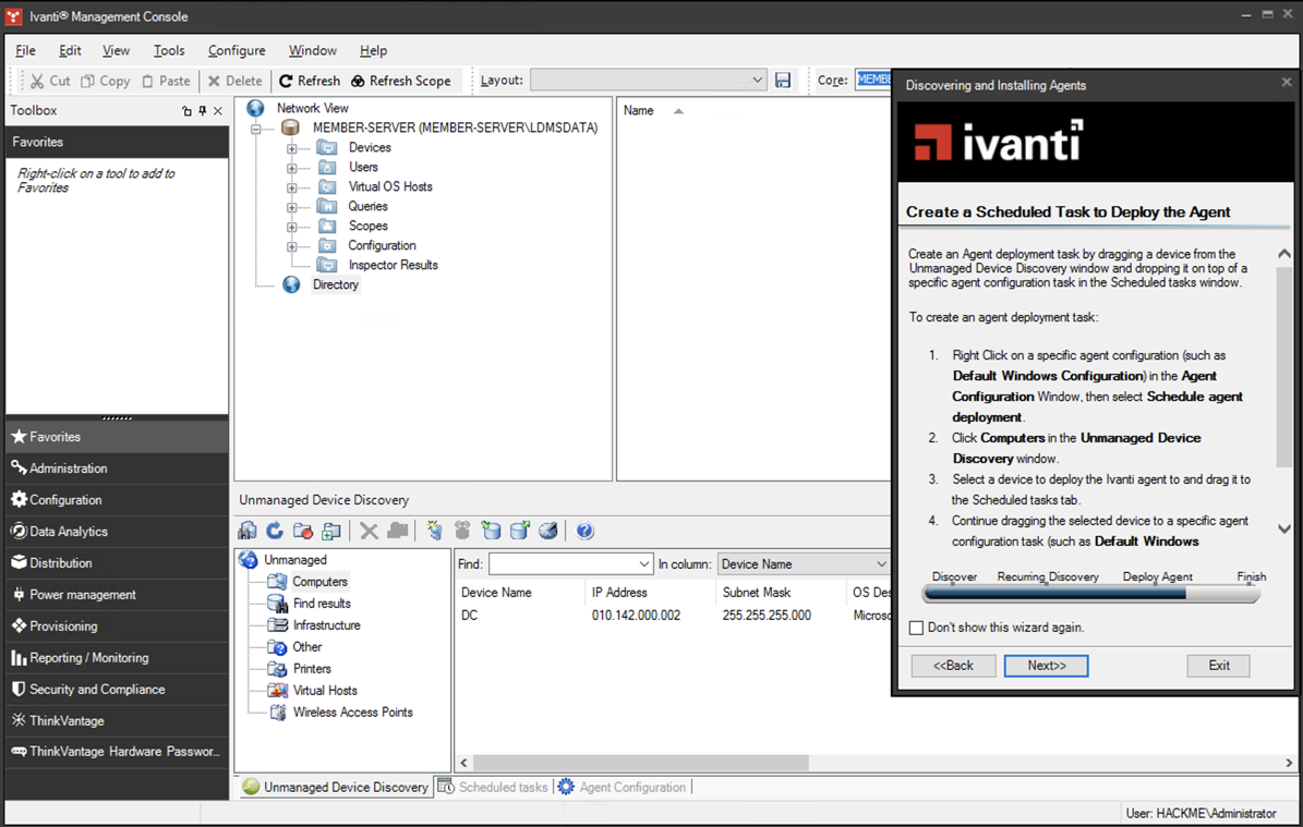 Install Ivanti on your Member Server, not on the Domain Controller.